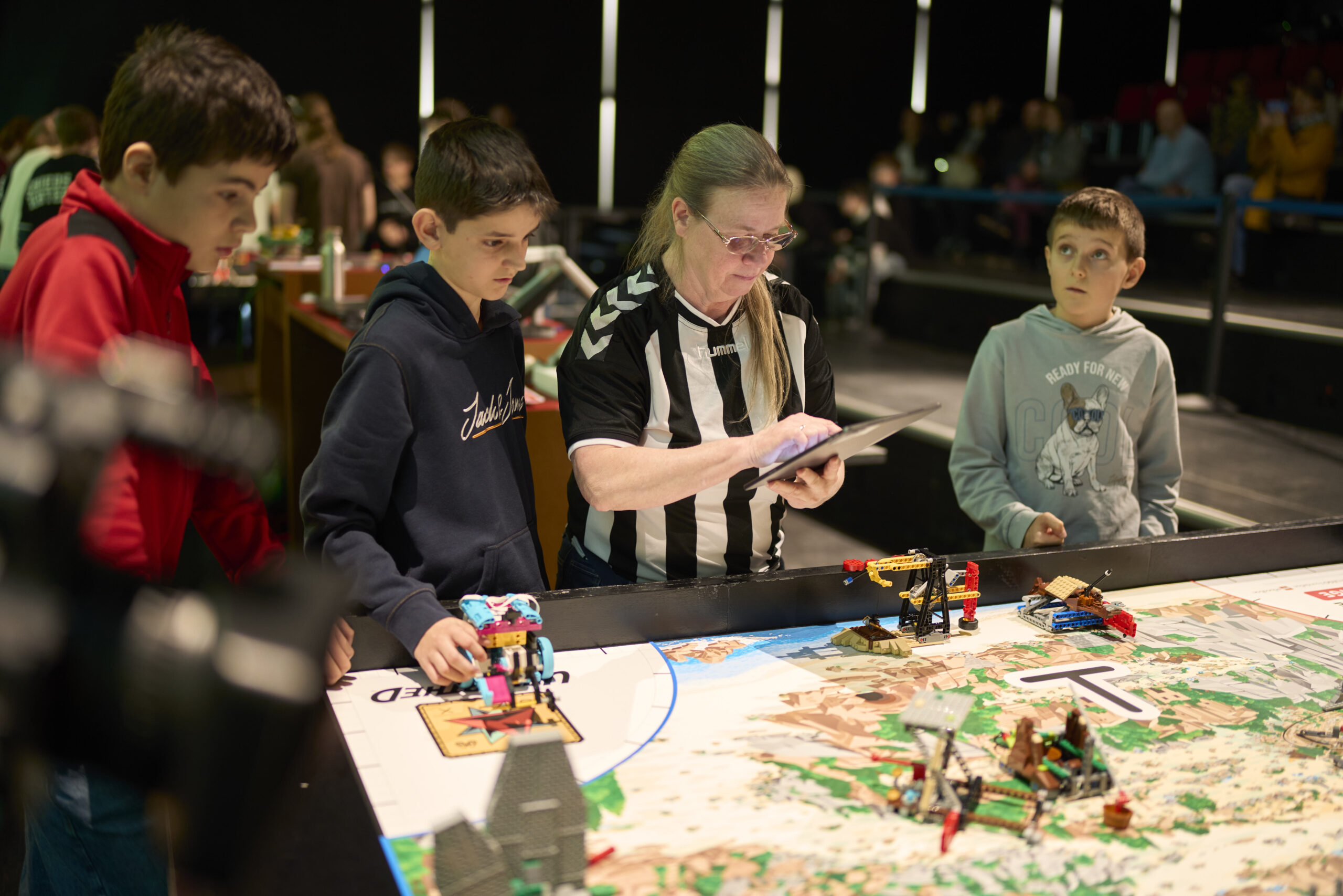 Am Wettbewerbstag wurde dann in mehreren Spielrunden versucht möglichst viele Punkte durchs Aufgabenlösen zu erringen. Zudem wurde einer Jury aus Expert:innen die Ergebnisse der Forscherfrage sowie die Besonderheiten des Robot-Designs vorgestellt. Auch aufgrund der hohen Gesamtteilnehmerzahl im Wettbewerb und der enorm starken Konkurrenz ergab sich leider nur eine Platzierung im Mittelfeld. Doch von der Jury gab es für die noch jungen Teams das klare Feedback, beim nächsten Wettbewerb unbedingt wieder teilzunehmen.