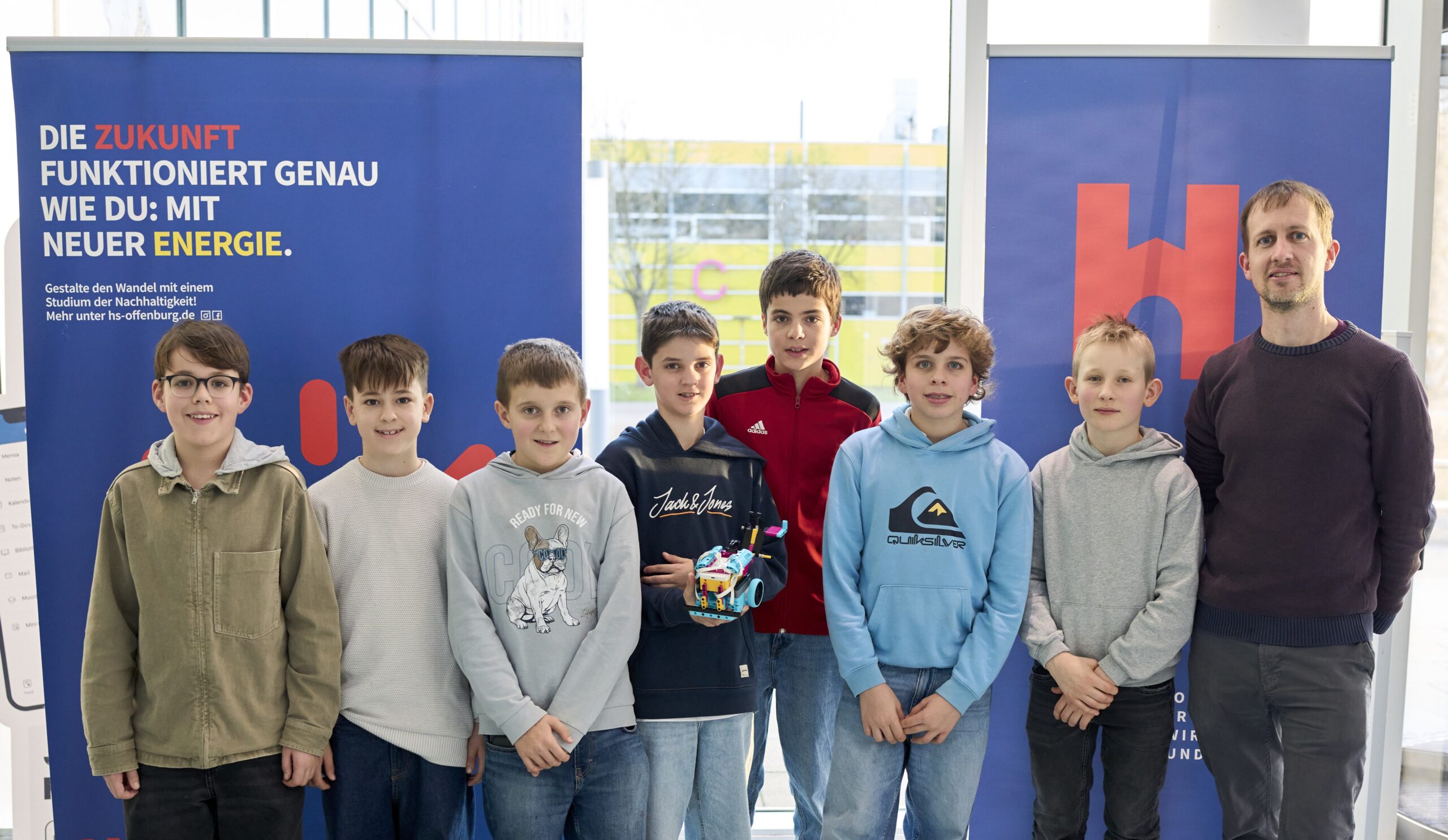 Der diesjährige Regionalwettbewerb der First Lego League (FLL) fand am Samstag, den 17.01.26 an der Hochschule Offenburg statt. Vom MSG nahmen diesmal sogar zwei Teams teil. Die insgesamt 15 Schülerinnen und Schüler aus den Klassen 6 und 7 hatten sich seit Beginn des Schuljahres um die Beantwortung von Forscherfragen zum diesjährigen Themenbereich der Archäologie bemüht. Parallel dazu wurde aus Lego ein eigener Roboter gebaut und entsprechend programmiert, so dass dieser auf einem Spielfeld verschiedene Aufgaben lösen konnte.